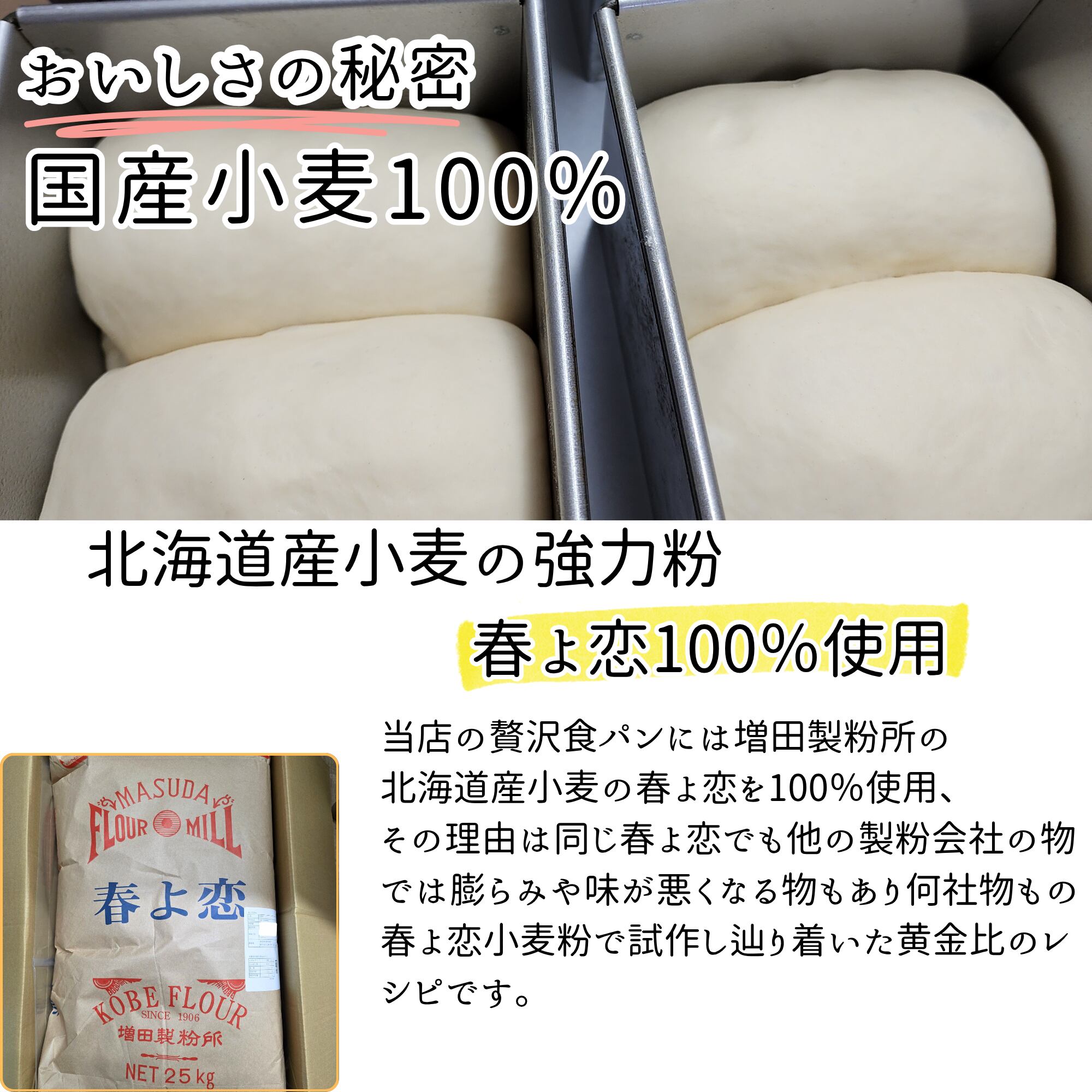 北海道産小麦春よ恋を100%使ったほんのり甘い贅沢な食パン。