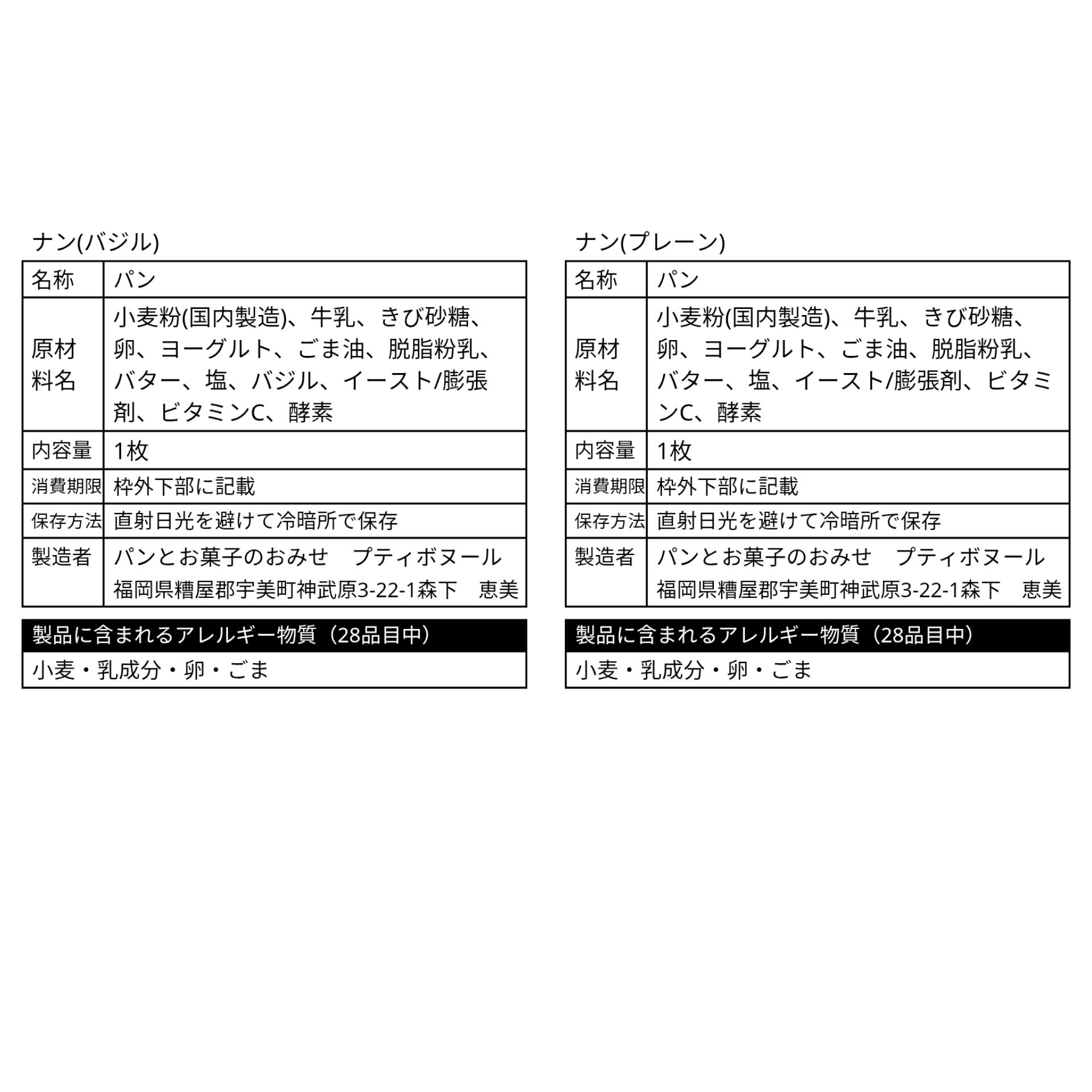 手のばしナン プレーン バジル 1枚◇ 2種から選べる♪ ナン