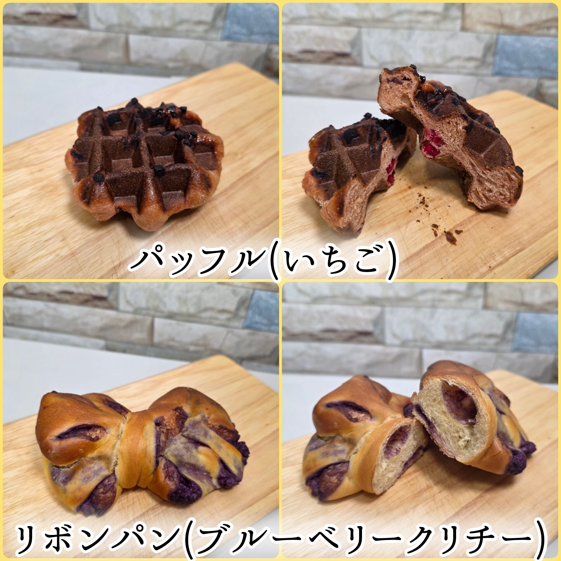 こだわりのカスタードクリームパンや種類豊富なあんパン・メロンパン・ぼうしパンや桜のパッフルなどの菓子パン全18種をラインナップ♪